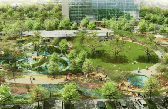 项目西侧一路之隔,政府规划了一座城市公园,市政公园配套自会带动人流效益,极大的提升周边物业的价值。