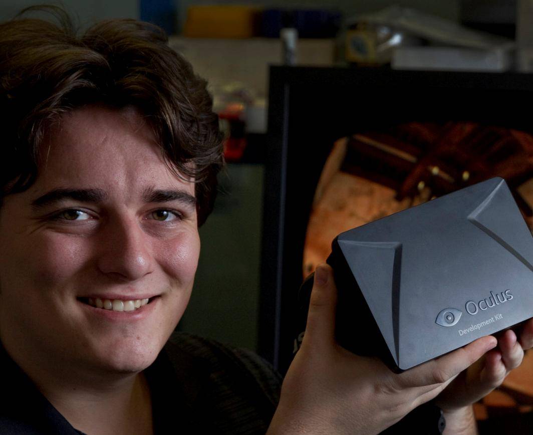 18岁的帕尔默也在自家车库里捣鼓出了一个大发明,VR头显Oculus Rift。