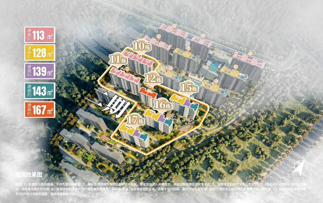 户型设计上,得益于纯板楼结构,保利·伴山瑧悦二期延续了保利高得房率的优良传统,有建面约113㎡、128㎡、167㎡三个面积段。